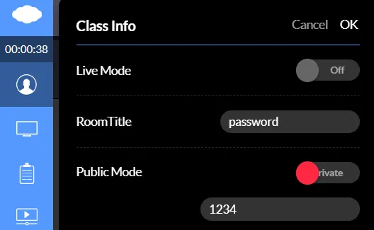 Click the cloud at the top left, open up Meeting Room Info, set it as private,