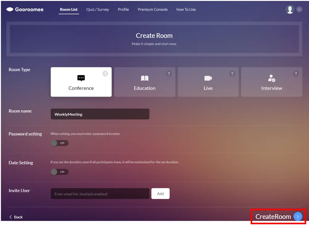 ex ) If the name of the meeting room to be created or participate in is "WeeklyMeeting"