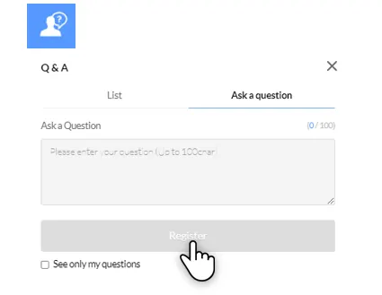A participant or student may click Q&A in the menu on the left and register a question under Ask Question.