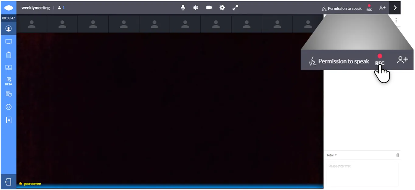 It is possible to record by clicking the Record button in the Gooroomee Biz meeting room.