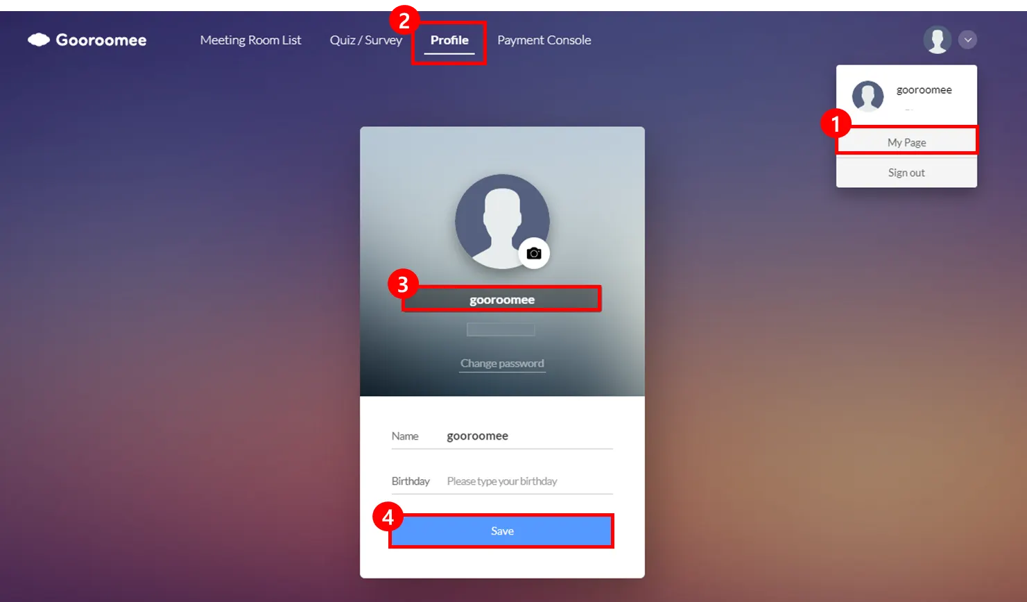 Change profile: How to change nickname on My Page and meeting room